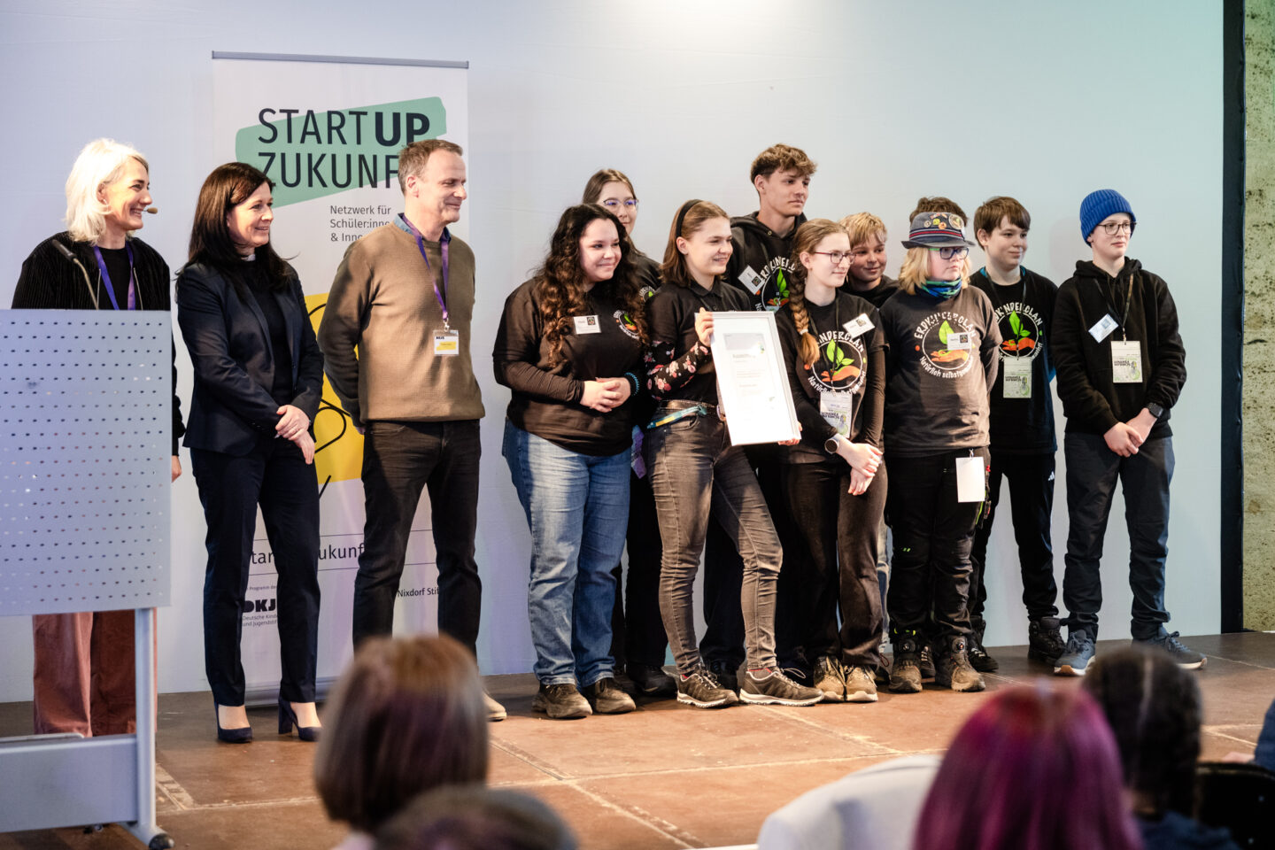 In diesem Jahr setzte die Messe zudem einen besonderen Schwerpunkt auf Inklusion und Nachhaltigkeit. Sechs Schüler:innenfirmen wurden für ihre herausragenden Leistungen in diesen Bereichen gesondert ausgezeichnet – vier davon sind Teil des Netzwerks Startup Zukunft!.