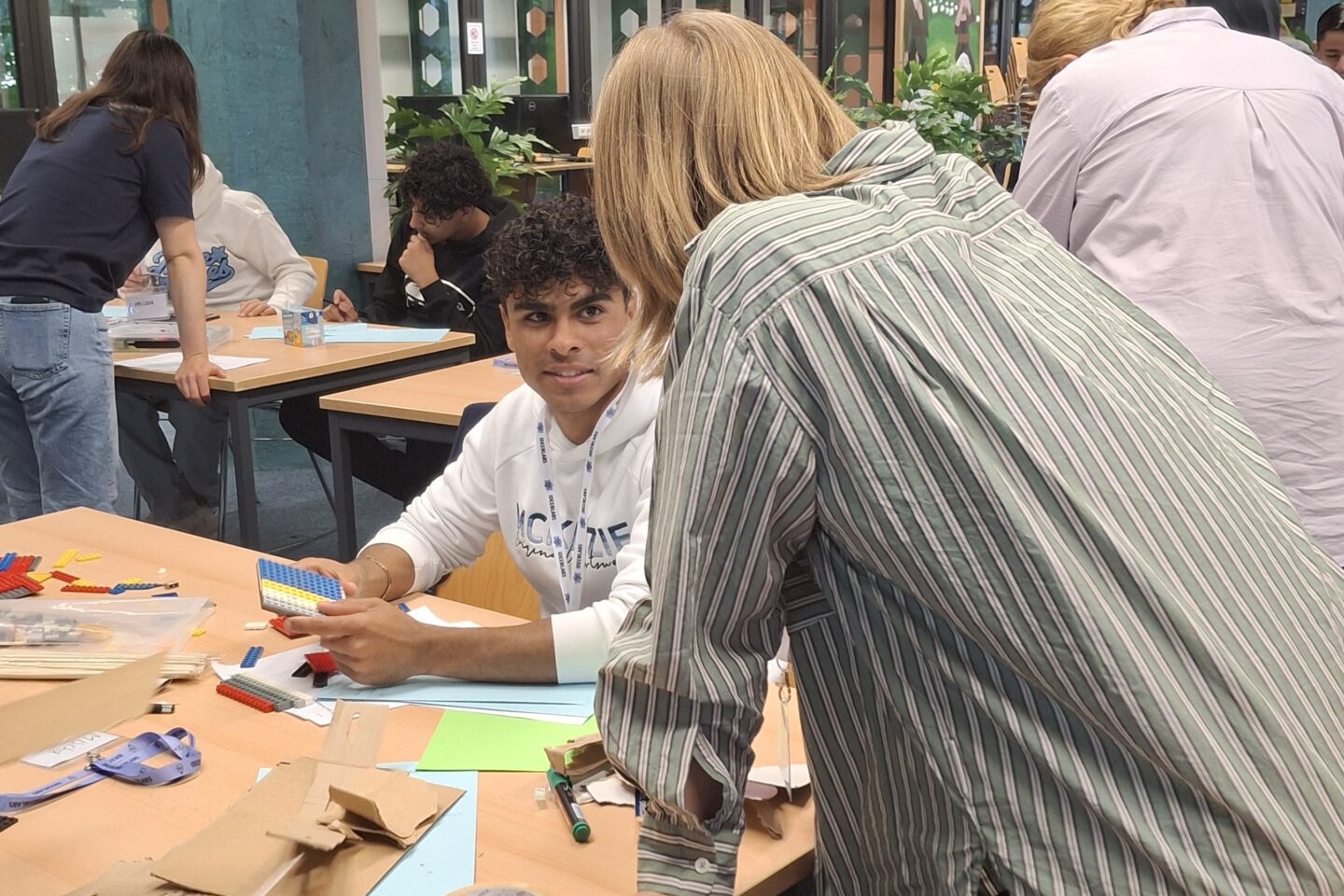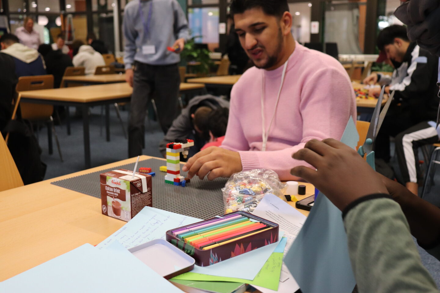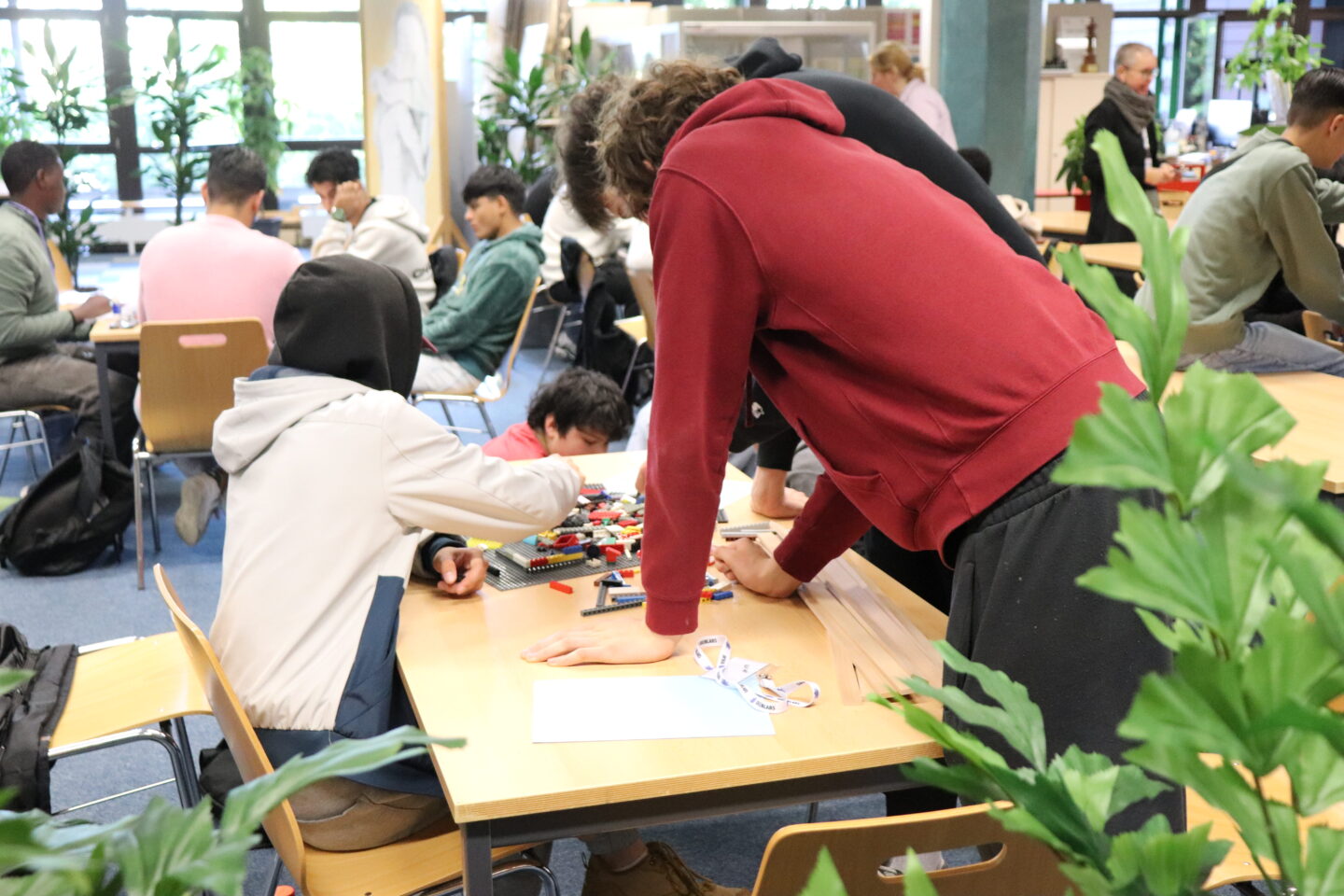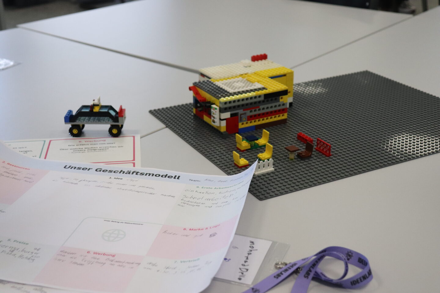 Am zweiten Tag nahmen die Ideen konkretere Formen an. Mit den „4W-Fragen“ – Wer ist die Zielgruppe? Was wird angeboten? Wo befindet sich das Angebot? Warum ist die Idee wichtig? – schärften die Gruppen ihre Geschäftsideen. Anschließend entstanden mit LEGO® und verschiedenen Bastelmaterialien die ersten Prototypen, die direkt im Austausch mit Mitschüler:innen getestet und verbessert wurden. Ergänzend dachten die Teams über zentrale Aspekte des Geschäftsmodells nach: Preisgestaltung, mögliche Konkurrenz, benötigte Ressourcen, Finanzierung und Vertrieb.